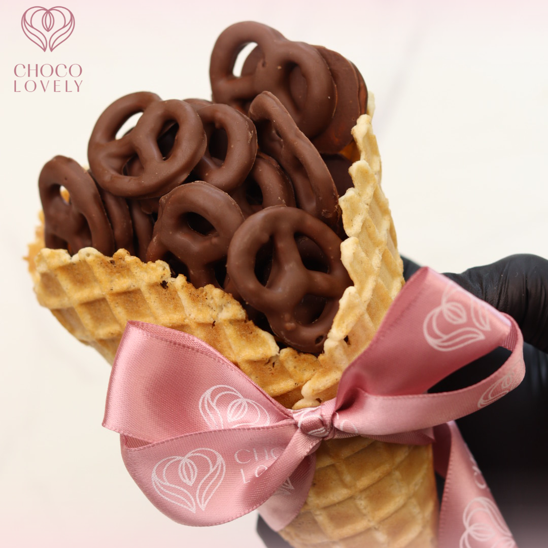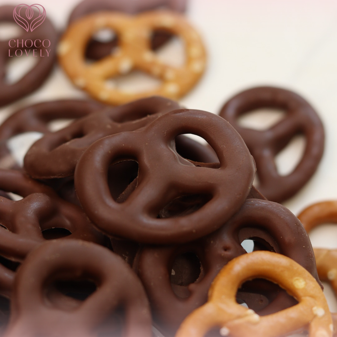 Traditional wheat pretzels thickly coated in milk chocolate with a whisper of sea salt. Crunch meets creamy.