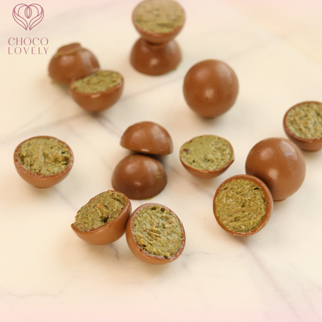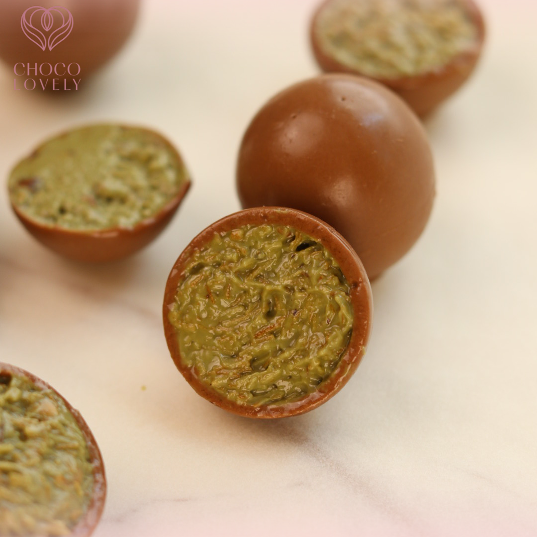 Crispy knafeh bites cloaked in velvety chocolate. A miniature East-meets-West delight for gifting and sharing.