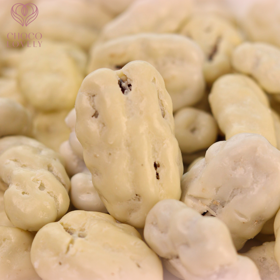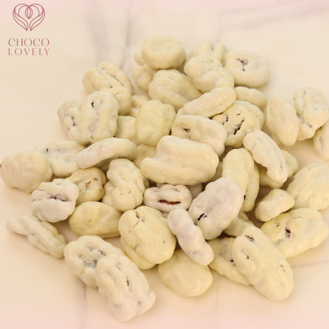 Silky white chocolate wrapped around golden pecans. Smooth, sweet, and gift-perfect.